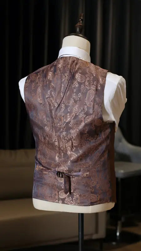 Kombinationen af disse materialer og farver gør jakkesættet velegnet til både formelle og festlige lejligheder. Bær det som et komplet tredelt sæt, eller kombiner delene separat for et mere afslappet, men stadig stilrent udtryk.