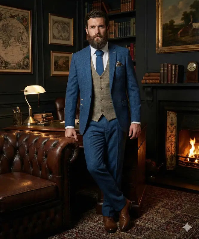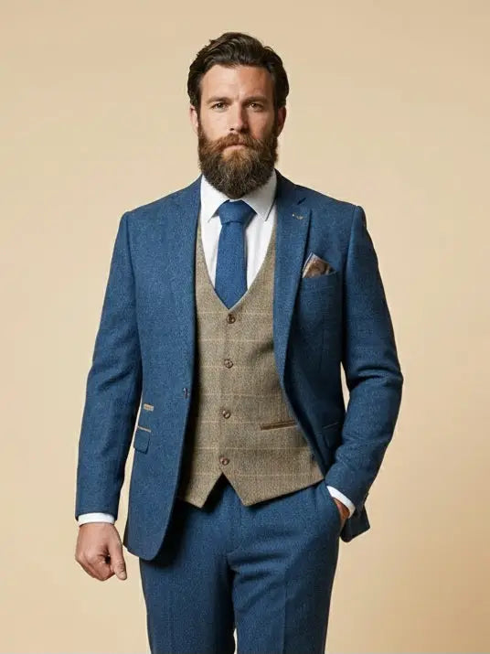 Jakkesæt Med Vest - Scott Blue Tan Match